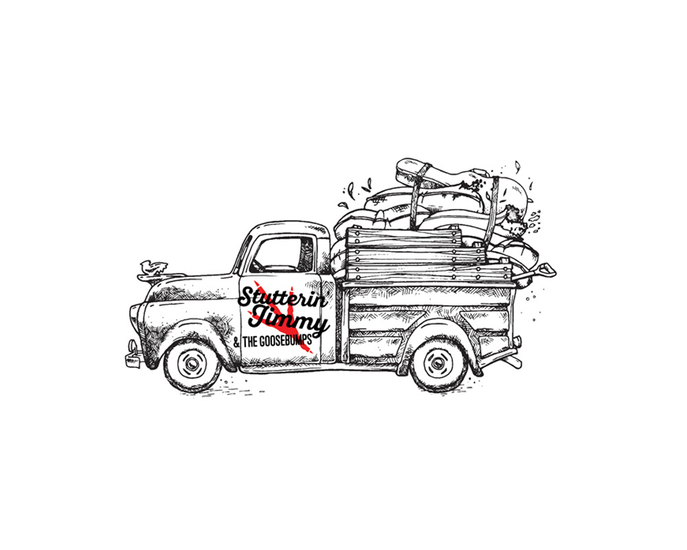 Logo designs for the band, Stutterin' Jimmy & the Goosebumps. A versatile set of designs to fit multiple applications