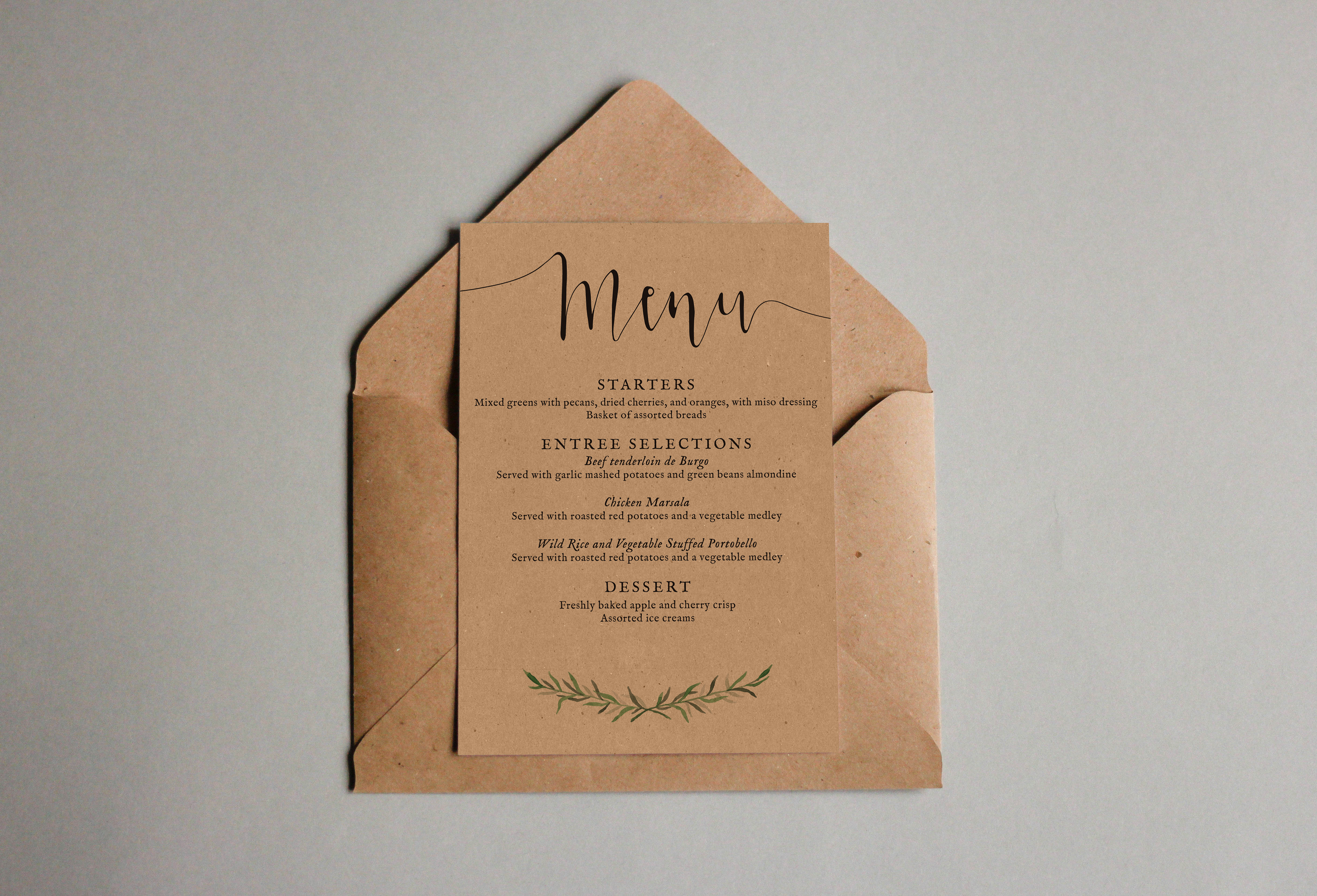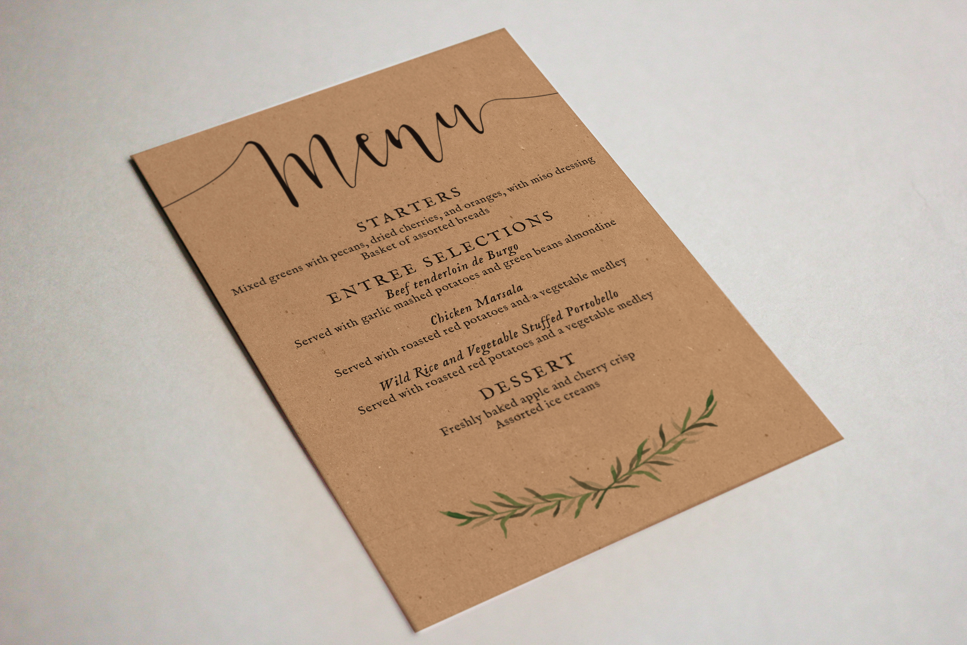 Wedding menu design on kraft paper